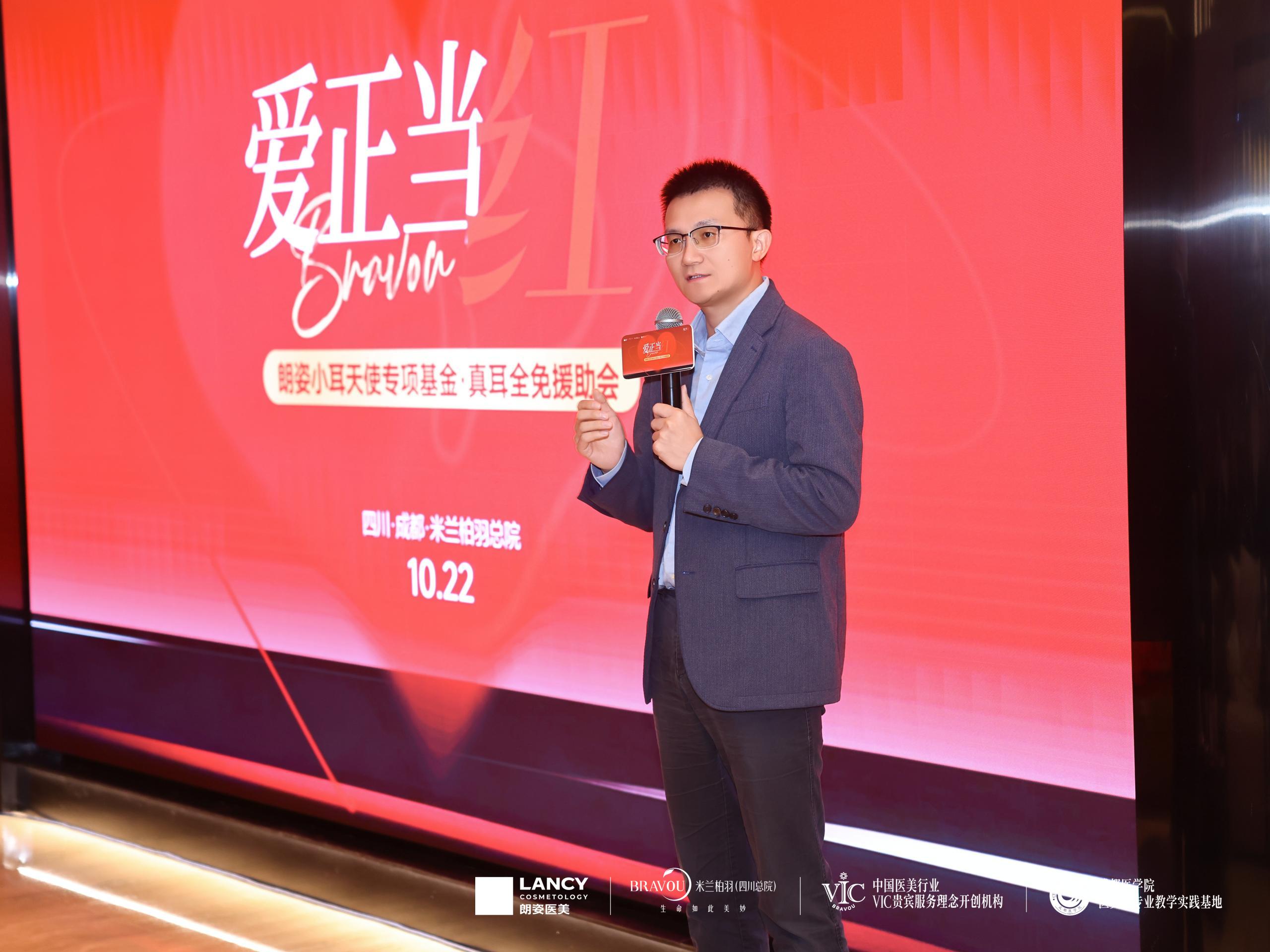 活动伊始,四川省残疾人福利基金会理事长税益中高度肯定了米兰柏羽总院与基金会联合取得的公益成果。他特别指出,自2021年6月,朗姿医美携手四川省残疾人福利基金会正式设立“朗姿医疗小耳天使专项基金”以来,目前该基金已成为救助小耳困难家庭的重要力量。米兰柏羽总院作为四川省残疾人福利基金会耳再造公益项目指定机构,多年来在耳再造领域的专业投入与持续深化,为众多孩子带来了生理与心理的双重治愈。