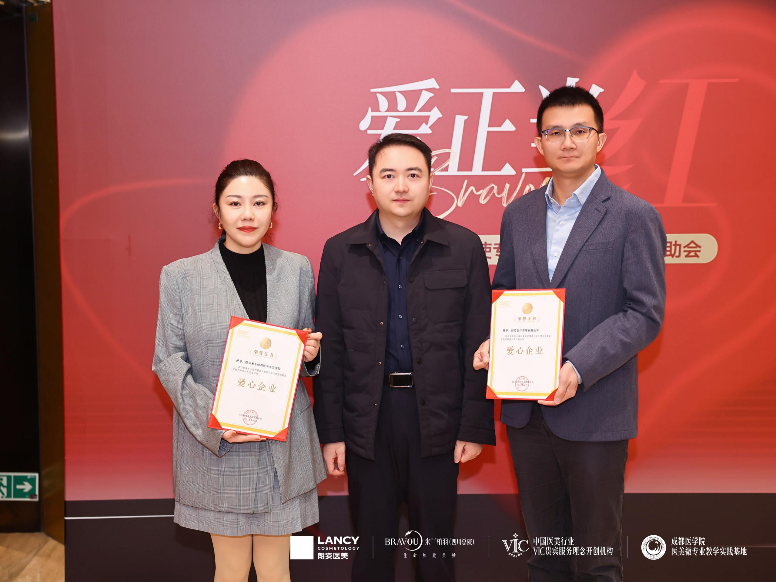 活动当天还特别设置了“石渠县小耳公益行”表彰仪式。据悉此次公益行抵达了近4500米的甘孜州石渠县,并与石渠县人民医院建立了友好合作,多方携手推动医疗资源向偏远地区延伸。为此,四川省残疾人福利基金会理事长税益中现场为朗姿医疗管理有限公司、米兰柏羽总院分别授予了“爱心企业”荣誉,并为常年坚持在公益一线的米兰柏羽总院执行总经理&杭州米兰柏羽总经理魏佑珈、米兰柏羽总院业务院长&技术总院长&小耳公益发起人康春雨院长颁发了“爱心楷模”证书,希望他们以榜样的力量持续扩大小耳公益声量。